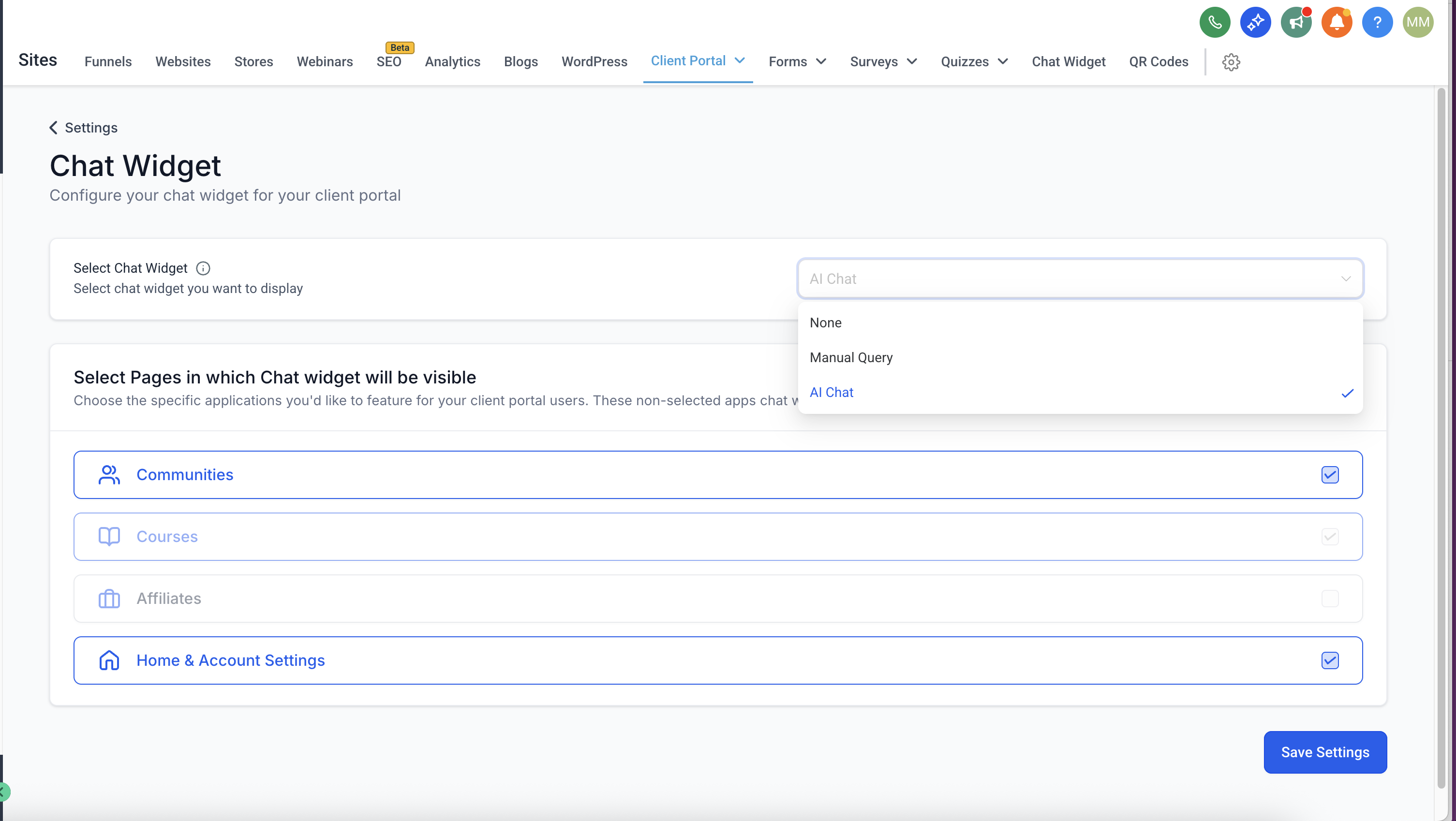 - Ve a Portal del Cliente → Configuración → Chat Widgets
