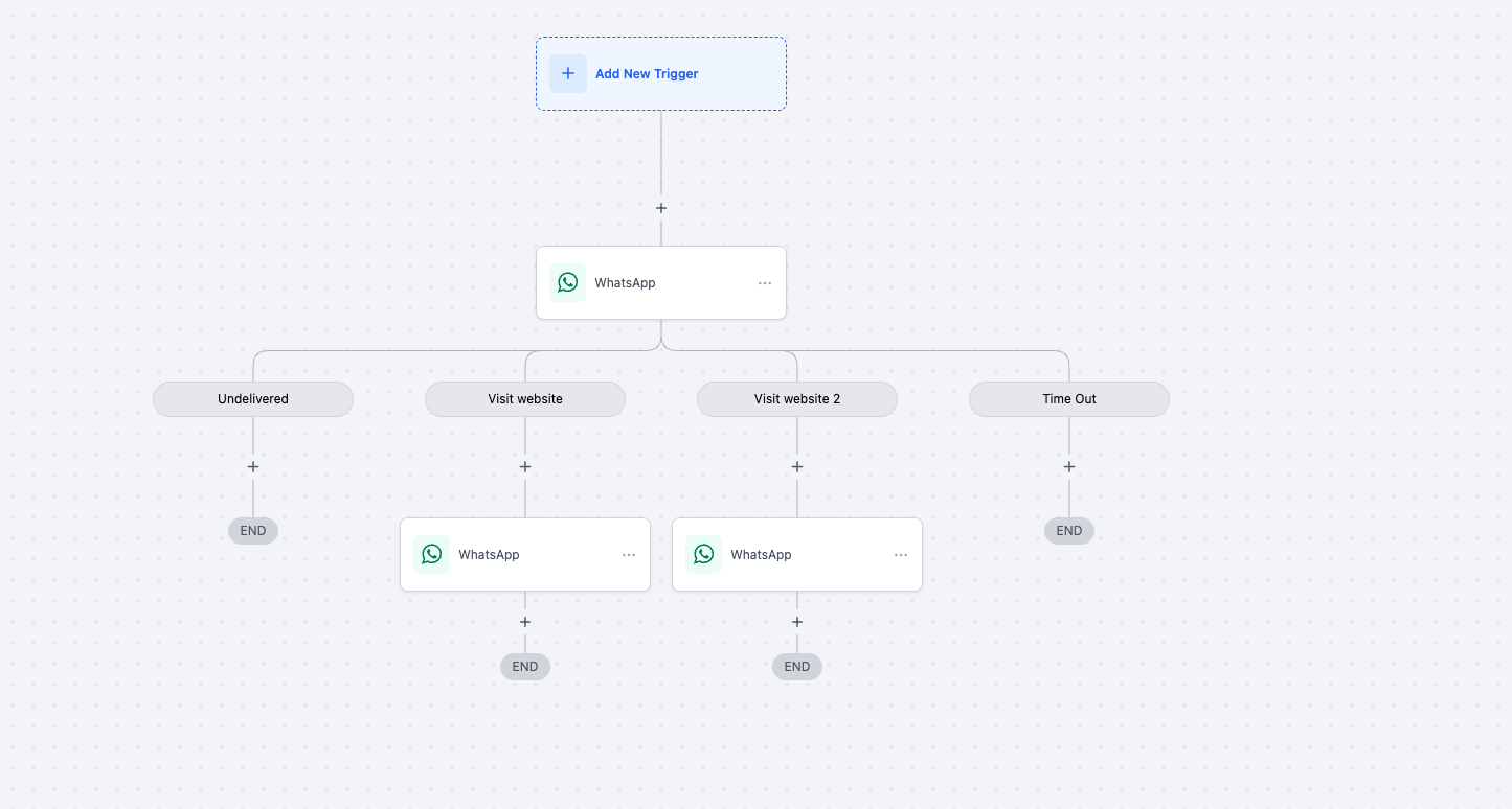 Tus plantillas de WhatsApp V2 ahora son mucho más poderosas. Ya puedes incluir enlaces activadores (Trigger Links) como botones, rastrear cada clic y ramificar flujos de trabajo automáticamente, tal como lo haces con campañas de Email o SMS.