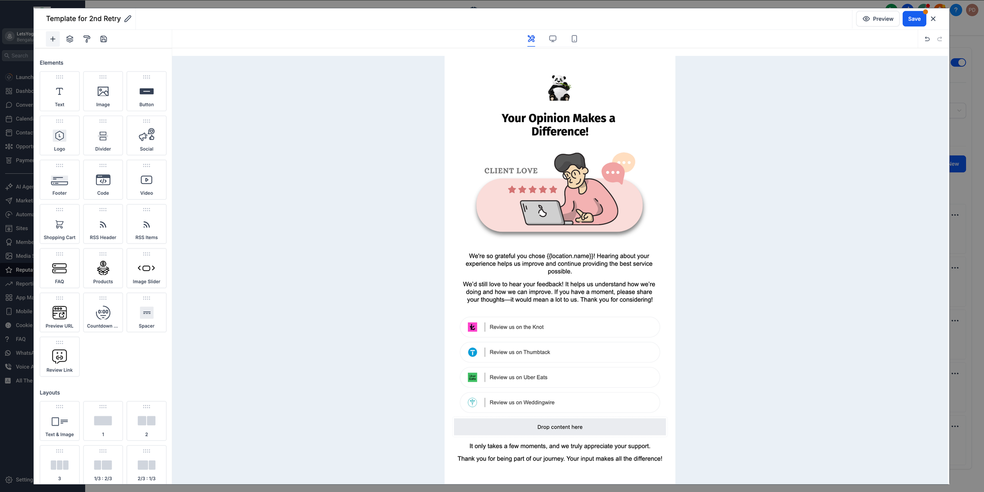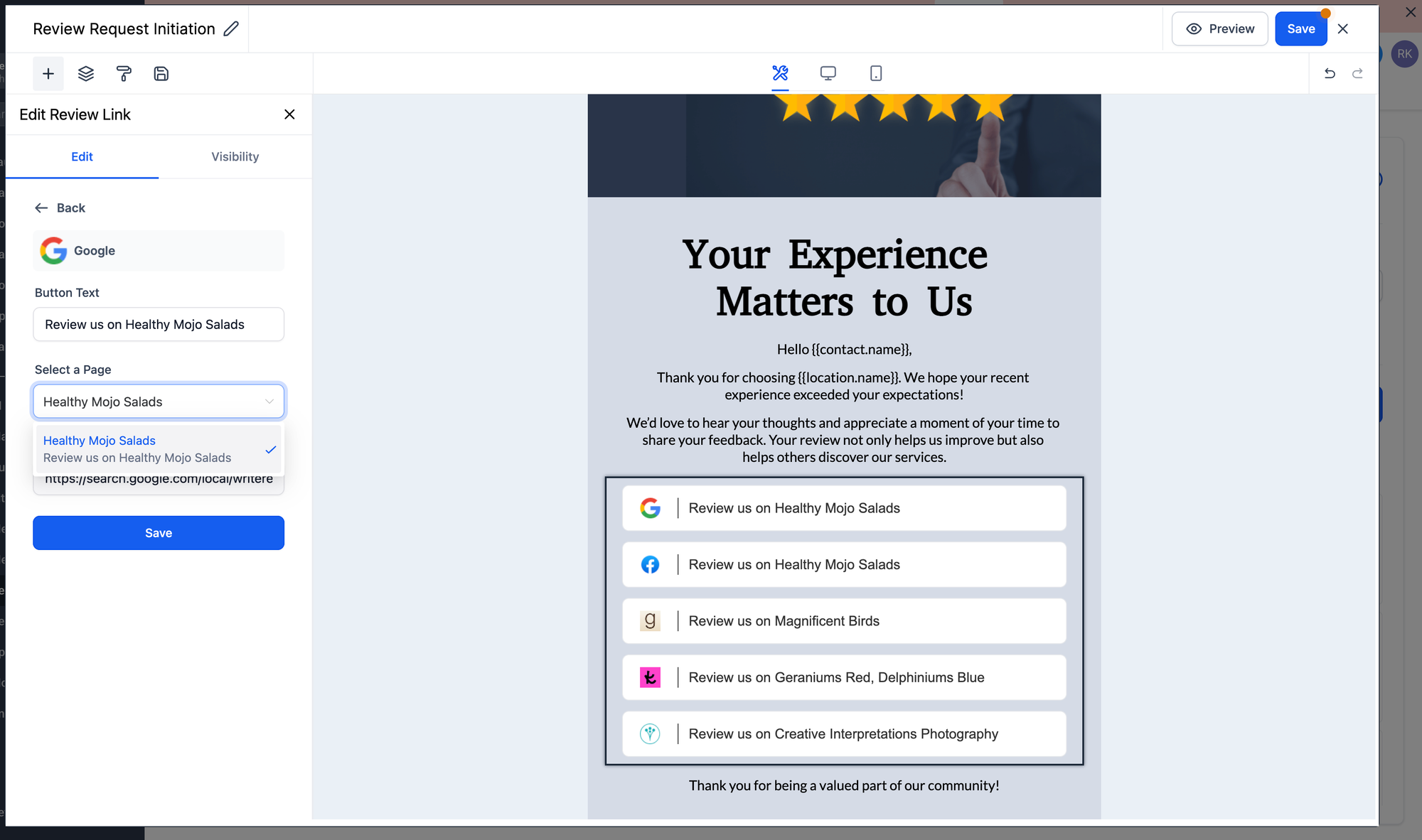 - Agregar varios enlaces de reseñas (Google, Facebook, Yelp, etc.) en un solo correo.