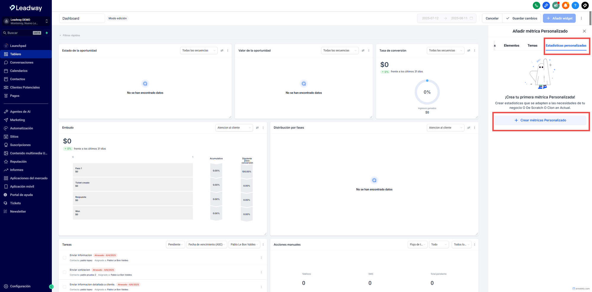 Si tu negocio mide indicadores clave como costo por adquisición, valor del cliente o tasa de conversión por canal, ahora podrás crearlos y monitorearlos directamente en tu CRM, sin depender de herramientas externas.