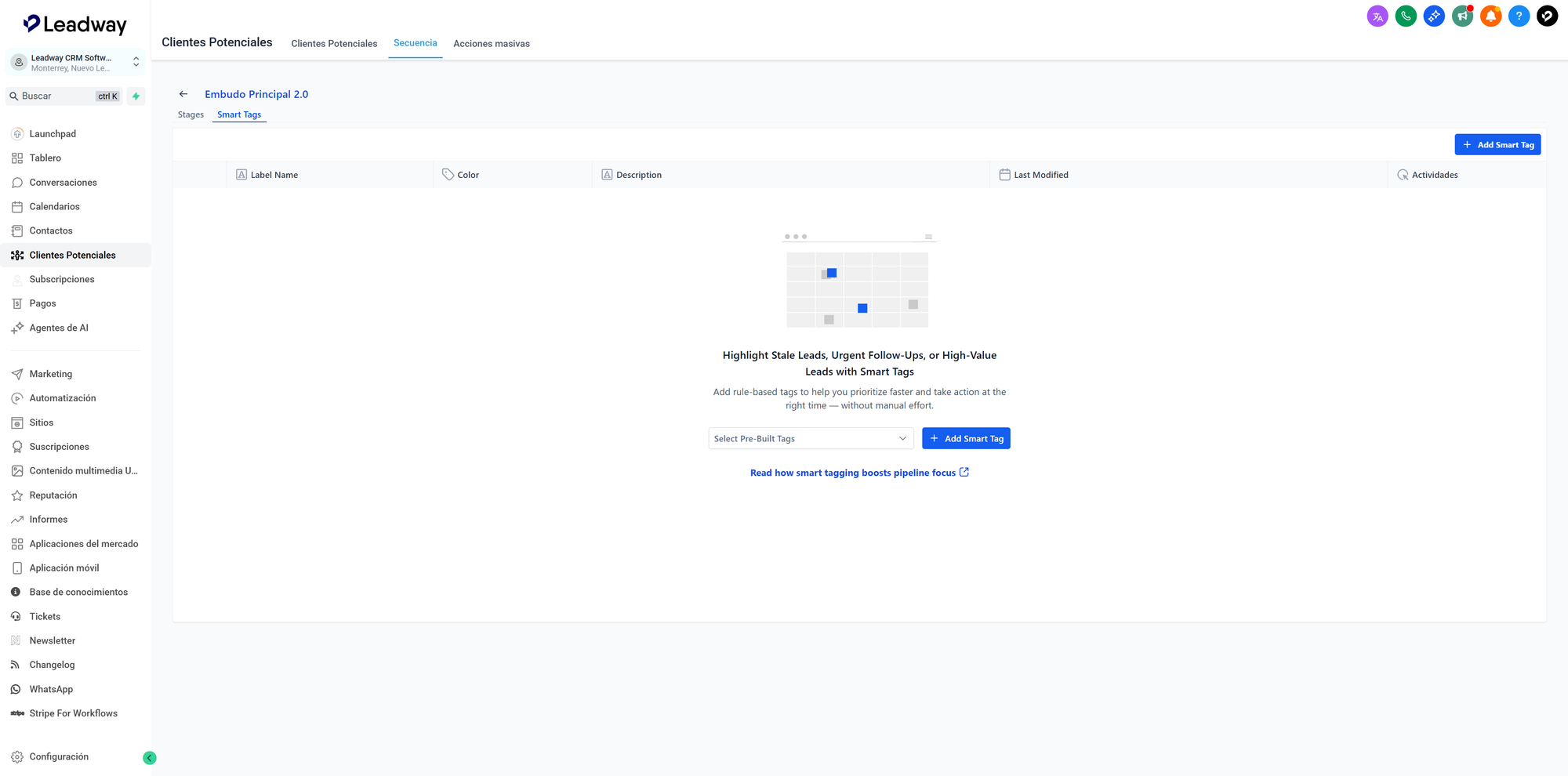 Con la nueva función de Smart Tags, puedes aplicar etiquetas de color personalizadas para destacar oportunidades clave sin depender de filtros o búsquedas.