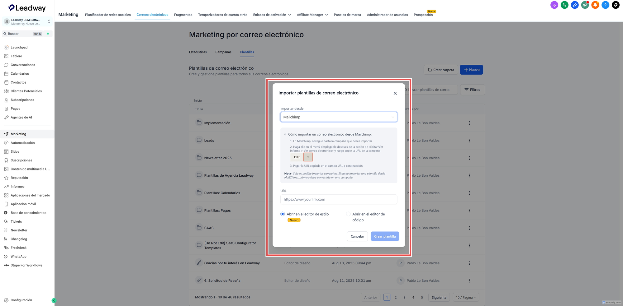 Importación de Plantillas desde Mailchimp al Editor Visual de Correos