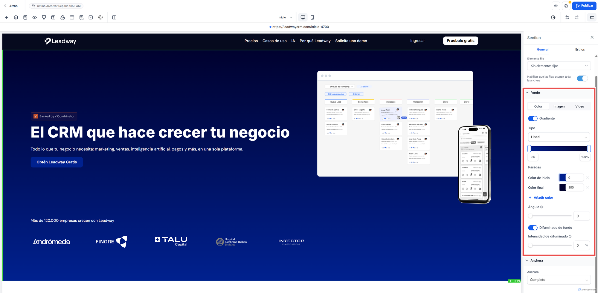 Nuevo: ¡Fondos con Degradado y Efecto Desenfoque en el Constructor de Páginas!