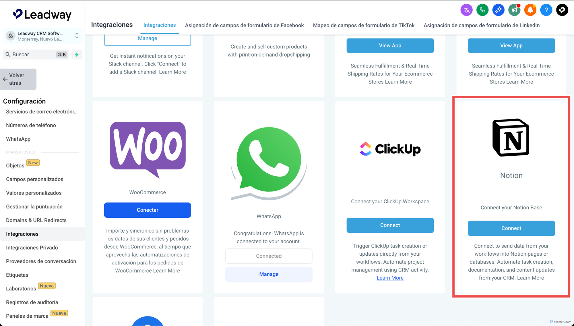 Ahora puedes conectar Notion directamente con los flujos de trabajo en tu sistema CRM sin necesidad de usar herramientas externas como Zapier o n8n.