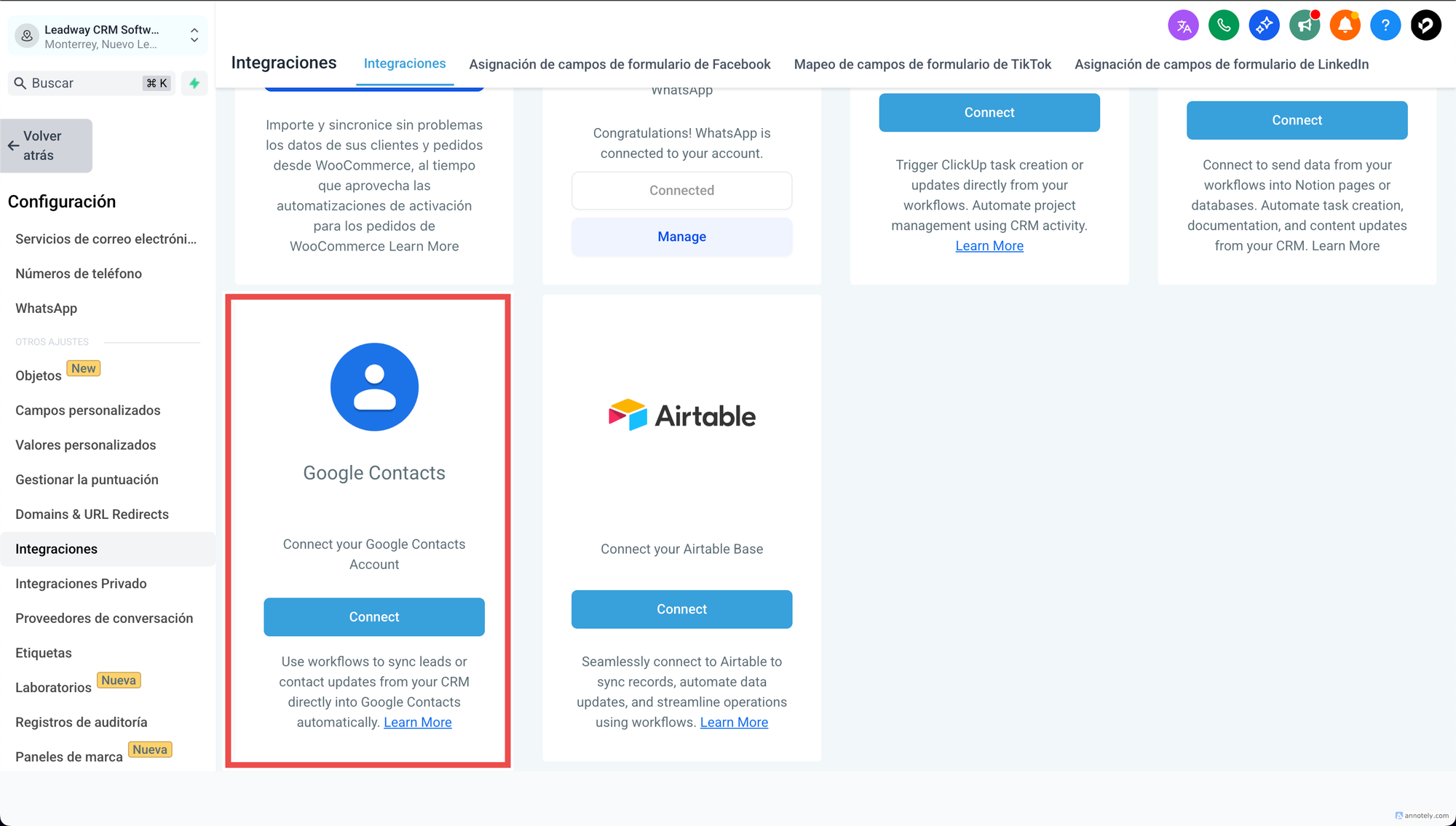 - Asegurar que cada nuevo lead, cita o formulario se refleje al instante en Google Contacts.